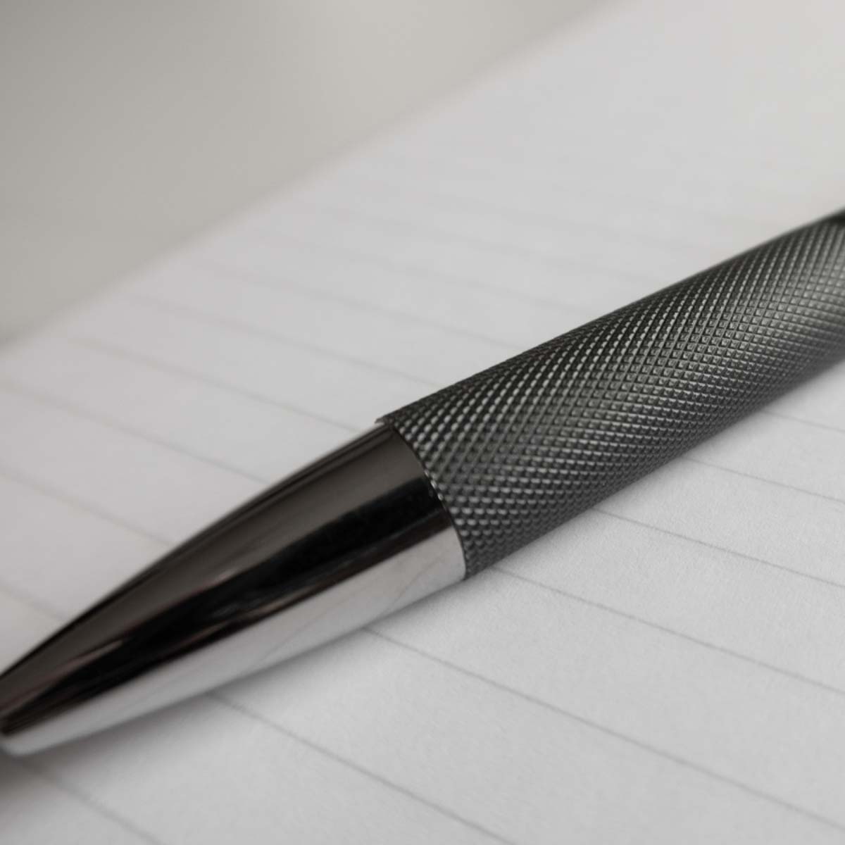 The Neo Pen is a contemporary ballpoint made from recycled aluminium with a mix of matte and polished details. Featuring a Swiss made TC ballpoint tip, German ink and a diamond pattern grip, it delivers smooth writing and modern style for sustainable corporate gifting.