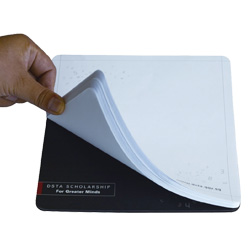 一個集多功能組合的滑鼠墊和記事本。滑鼠標可在每張紙的表面上滑行及寫作。以50張紙為一個單,一的顏色打印均包括在內。用完記事本後, 全彩色印刷滑鼠墊還可以繼續正常使用。超薄滑鼠墊只是1毫米厚。產品大小: 170 x170mm最大打印區域為 :170 x170mm