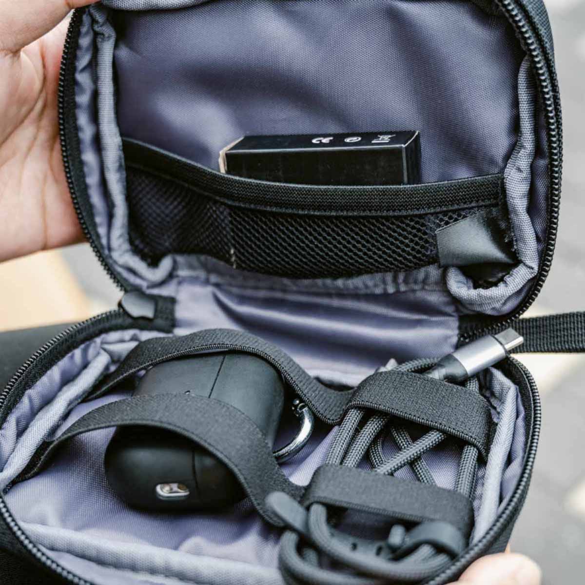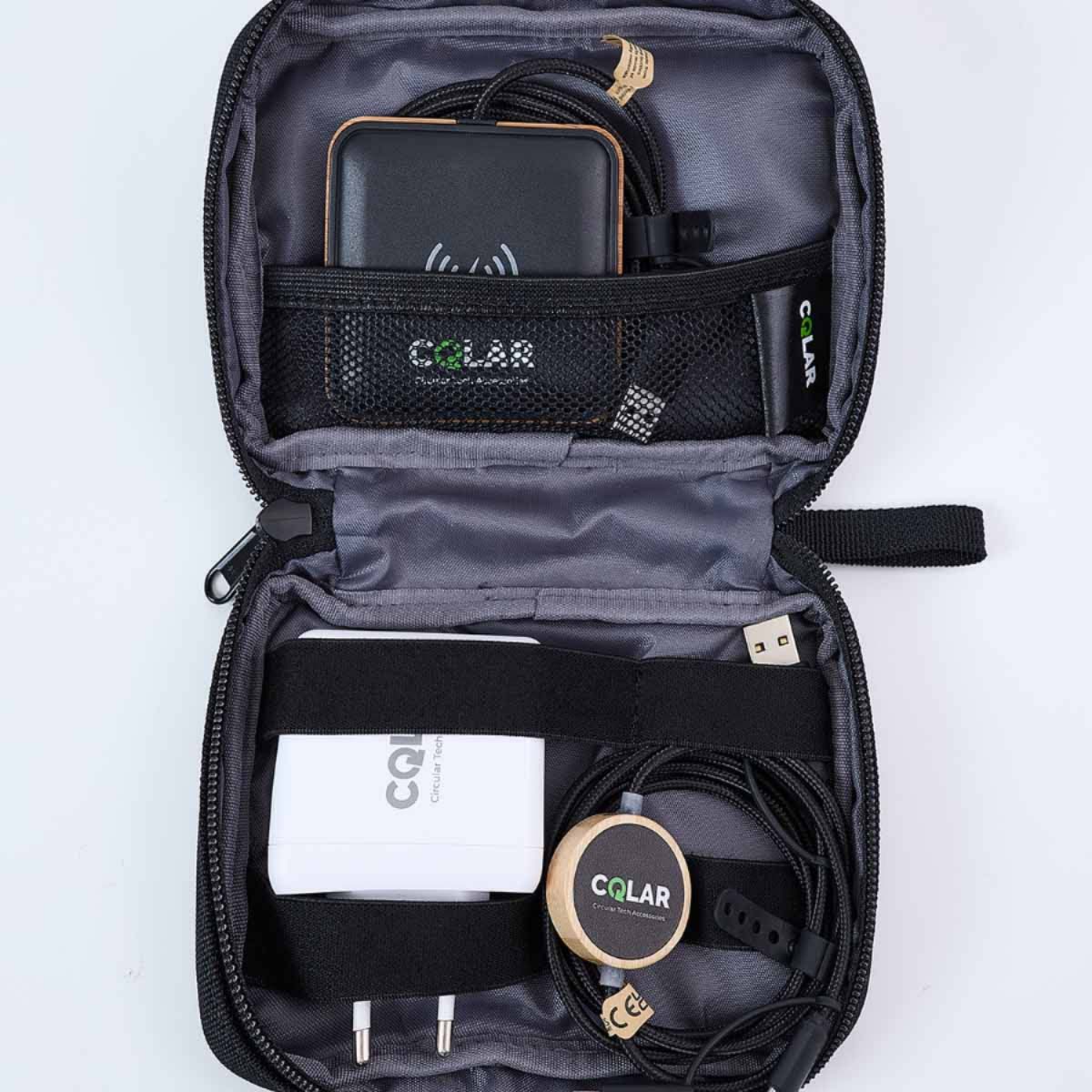 Made from recycled PET bottles, this compact organiser keeps essentials neat with mesh pockets & elastic loops. Great eco-friendly corporate gift with custom branding options.