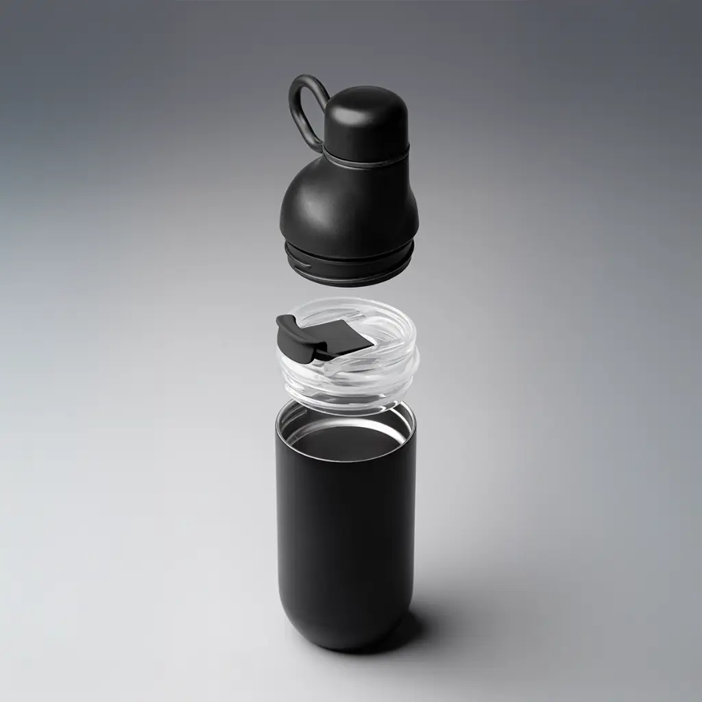• 2‑in‑1 Bottle & Tumbler (500 ml / 370 ml)