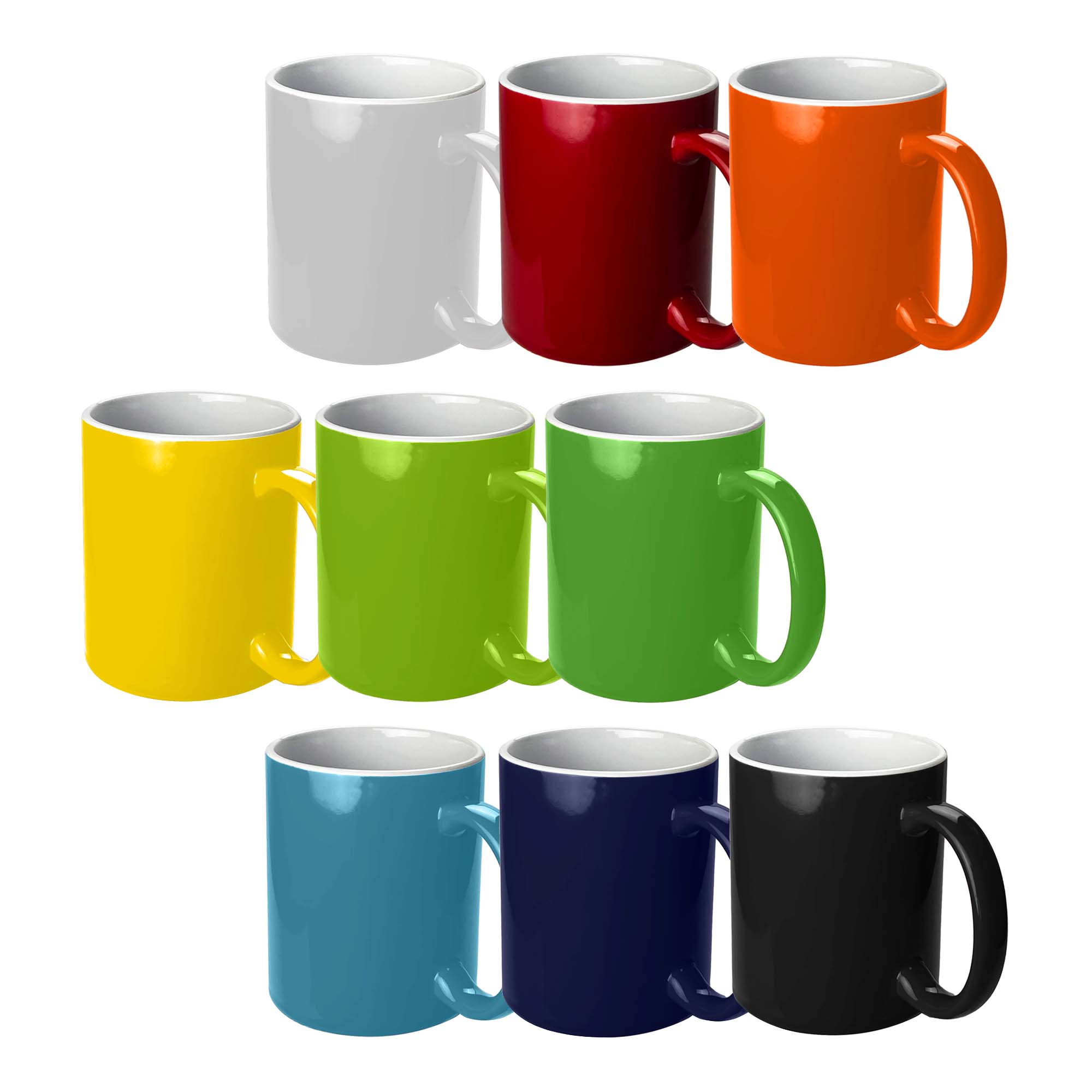 Ceramic coffee mug, 330ml, 9 vibrant colours, boxed. Timeless design for corporate gifts, employee appreciation, and branded drinkware in Hong Kong.