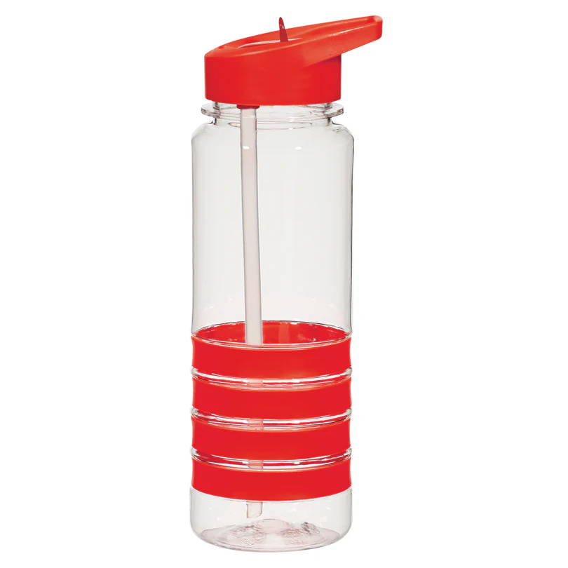 Corporate gifts: 710ml PCTG sports bottle with silicone grip bands. BPA free corporate gifts for events, teams. Spill-resistant sip lid, easy carry handle.