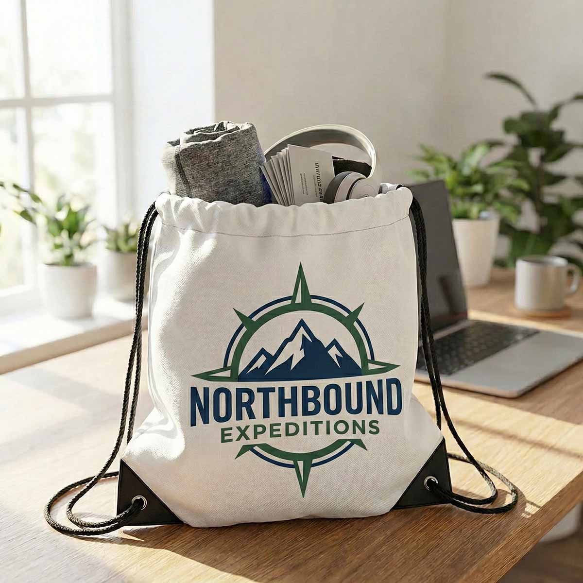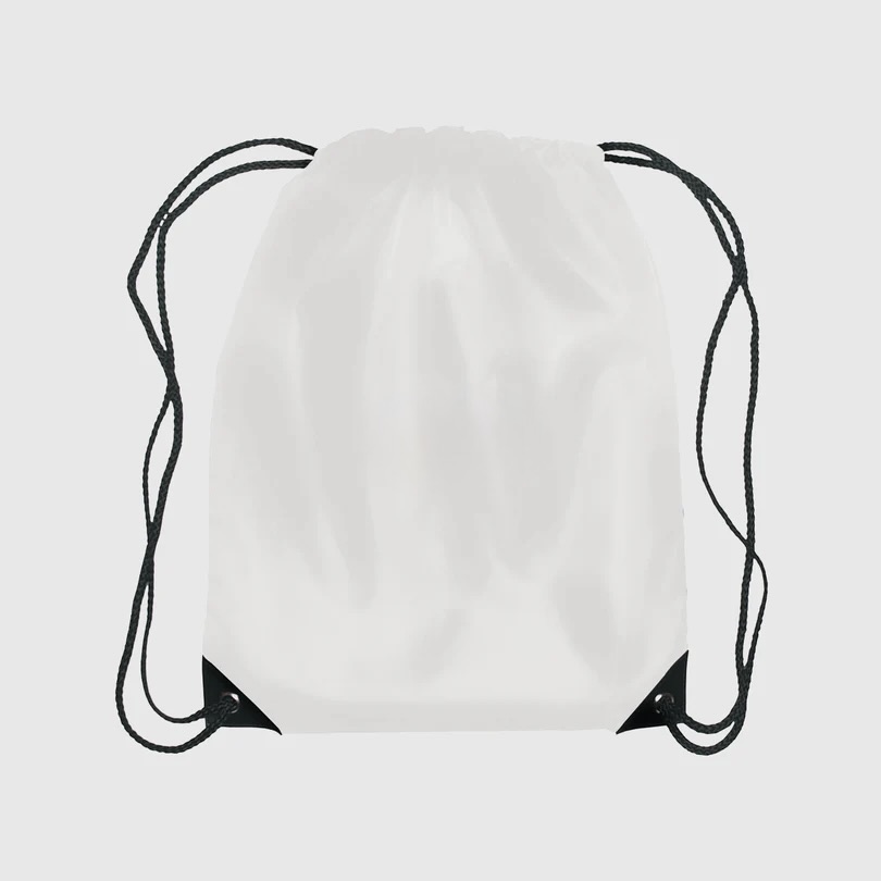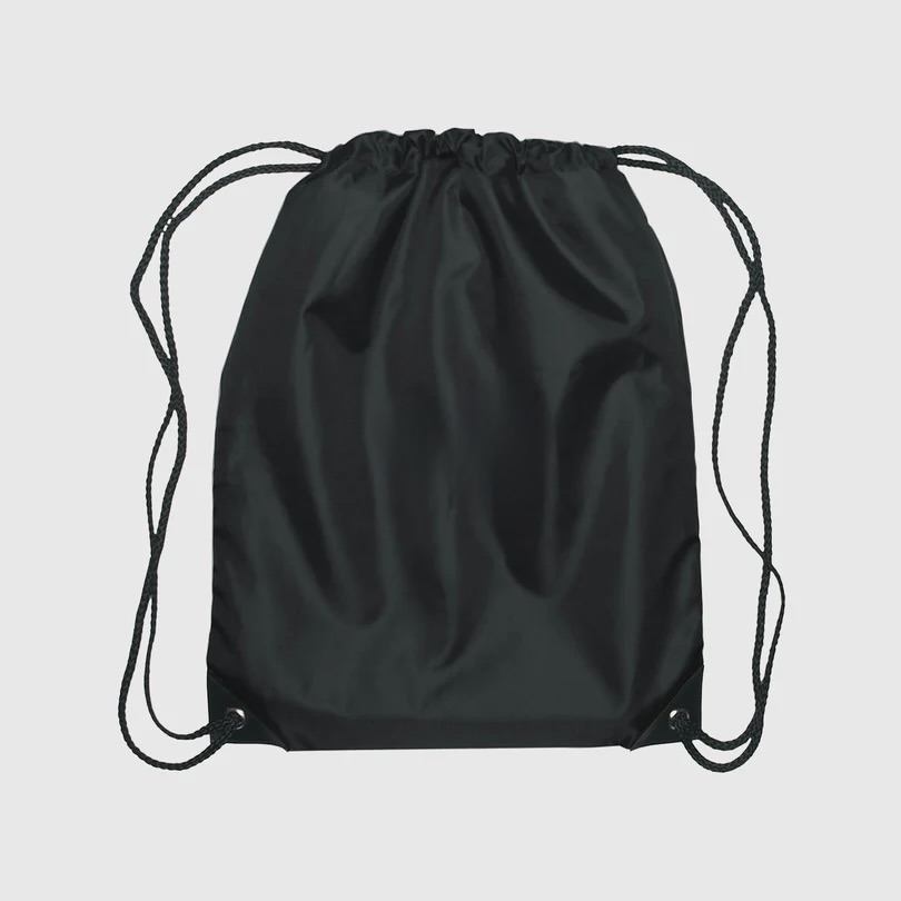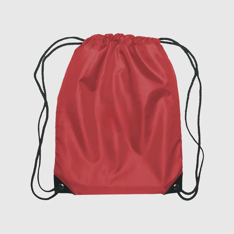 Corporate gifts: Small Hit sports pack drawstring bags. 210D polyester cinch sacks with reinforced corners. Heat press logo area 8 x 9 inches.