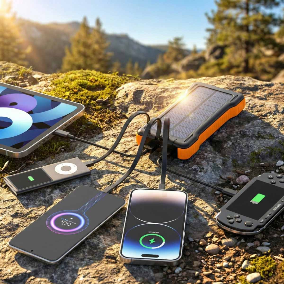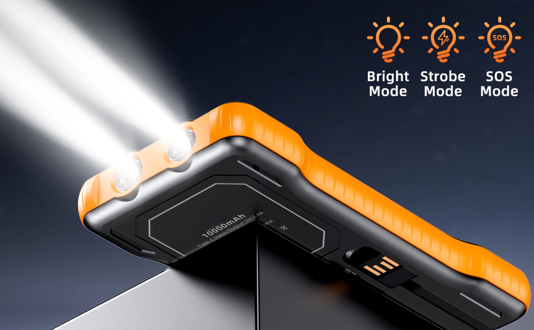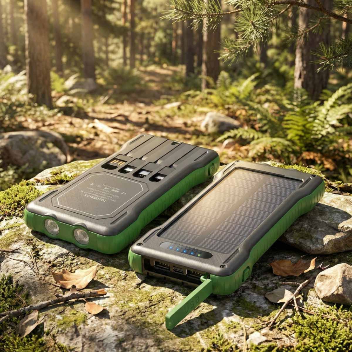 The Solar Power Bank with Built‑in Cables is a 10,000mAh outdoor‑ready charger made from ABS plastic and silicone. It includes four integrated charging cables, dual USB outputs, multiple input ports and an LED torch with SOS mode, allowing users to power up to five devices at once making is ideal for travel, events and emergency use in Hong Kong.